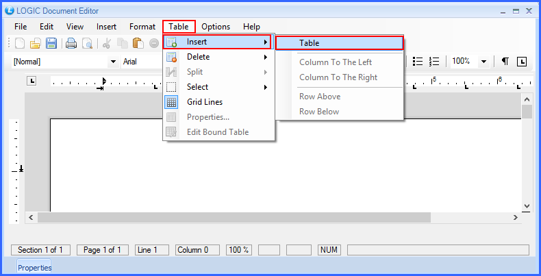 You can start with the designing of Footer of your bill. Click on the Table> Insert > Table. |