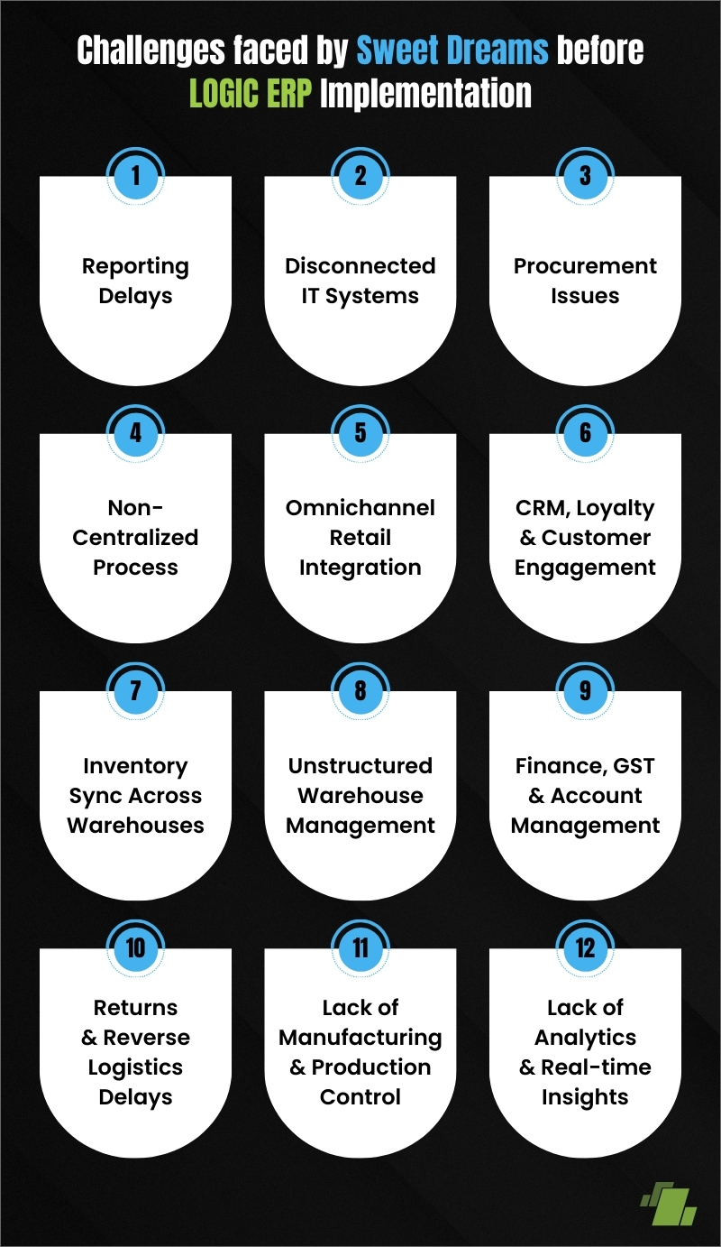 Challenges faced by Sweet Dreams before LOGIC ERP Implementation